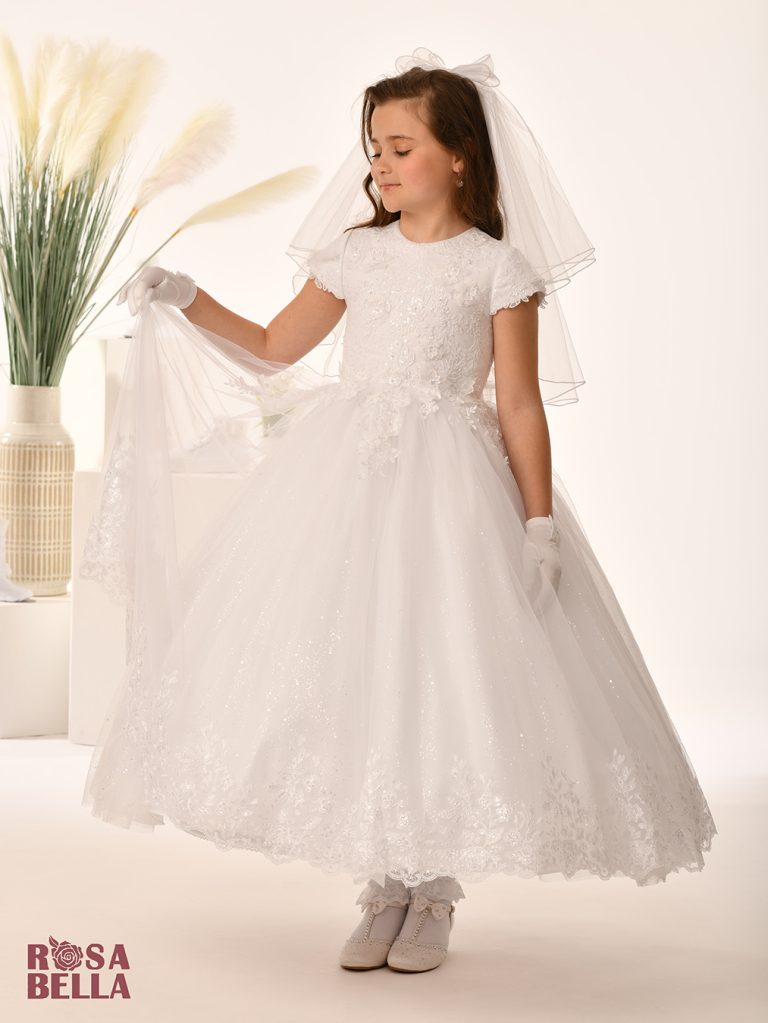 White Communion Dress from the Sweetie Pie 2026 communion dress collection available to order in all sizes up early  December 2025.