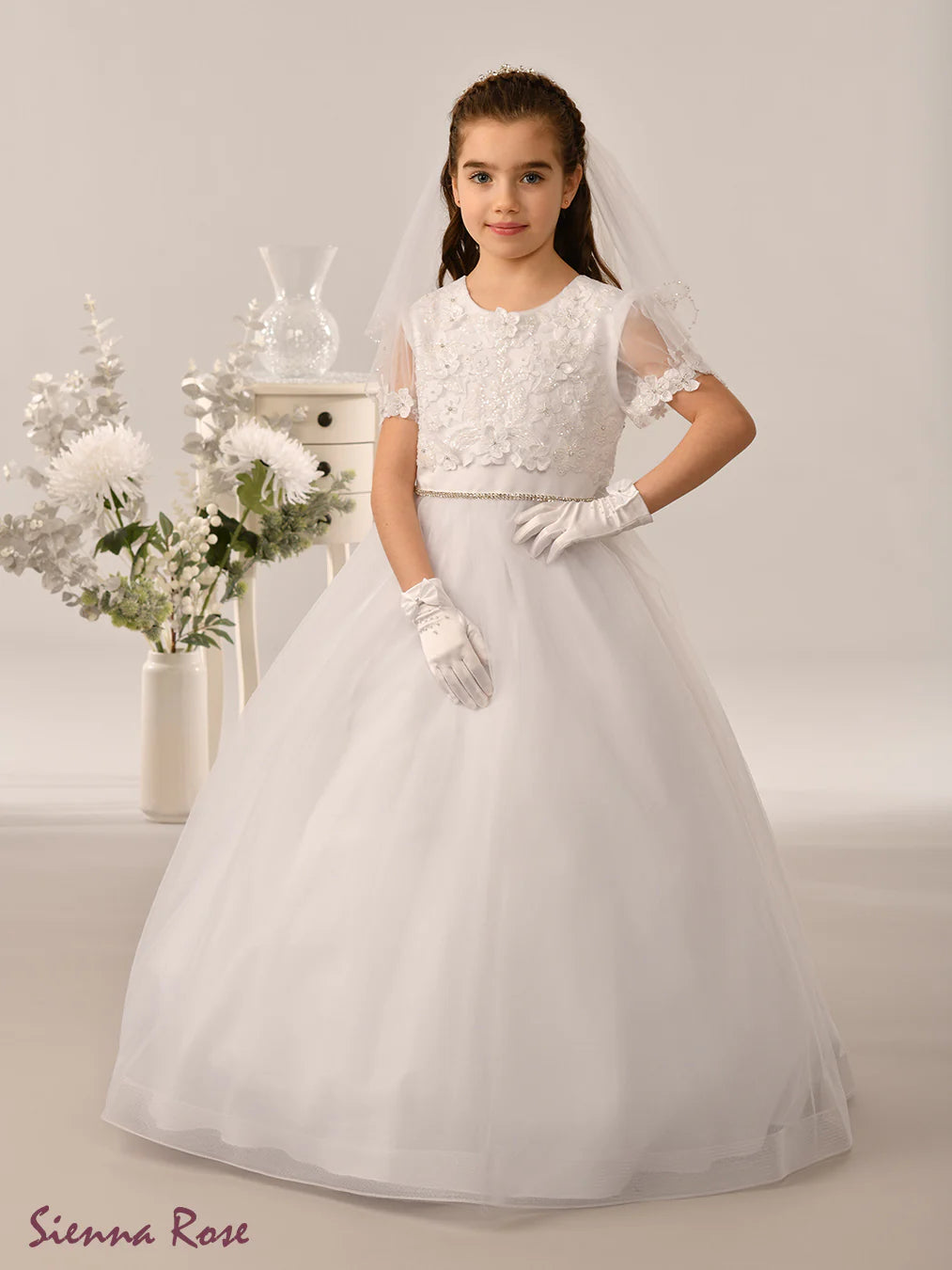White Communion Dress from the Sweetie Pie 2026 communion dress collection available to order in all sizes up early  December 2025.